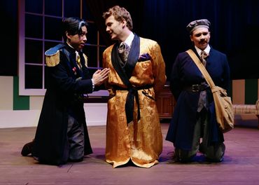 The Government Inspector is a new musical comedy based on Nikolai Gogol's classic farce. It completed an initial collegiate run to enthusiastic, sold-out crowds at Wheaton College in November 2025.